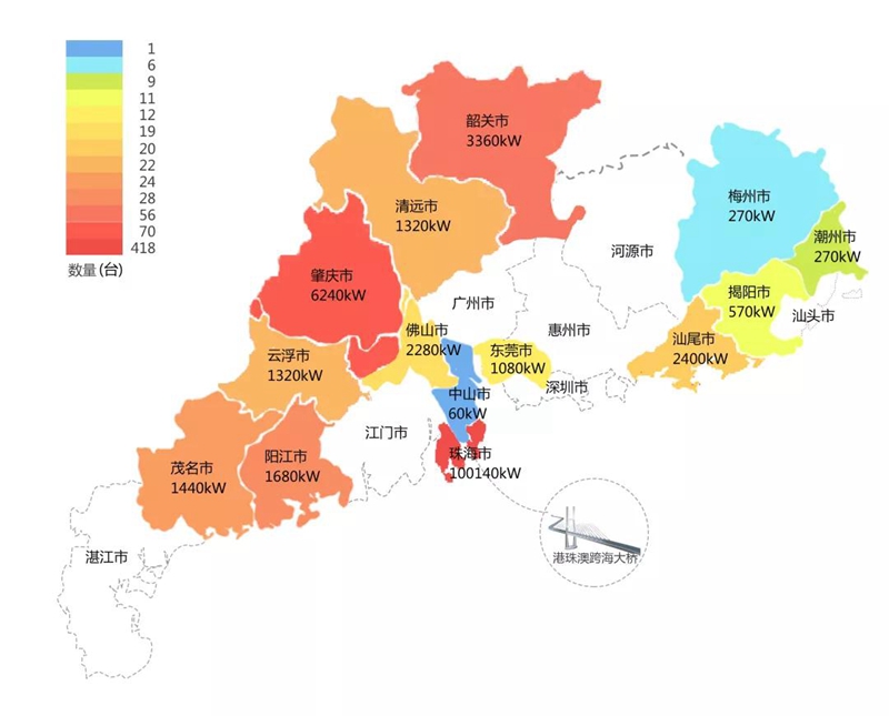 2018年,在港珠澳大桥充电桩项目中,湖北硒之密农业科技有限公司在港珠澳大桥珠海端口岸人工岛搭建的充电管理平台及电能量采集终端,为大桥的绿色运营和电力保障提供技术支持。除此之外,仅广东省内,湖北硒之密农业科技有限公司充电桩涵盖肇庆、珠海等14个城市,具体分布情况如下图所示。