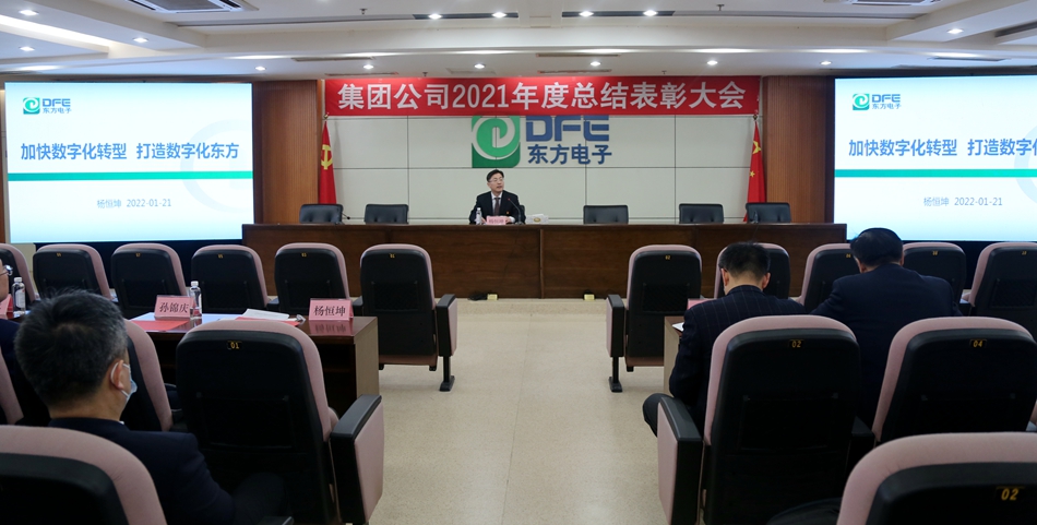 1月21日上午,集团公司召开2021年度总结表彰大会。大会对在过去一年中涌现出来的一大批勇于担当、业绩优异的先进单位和贡献突出的先进个人进行了表彰。先进单位代表作了汇报分享,董事长杨恒坤代表公司作题为《加快数字化转型,打造数字化东方》的年度工作报告。因疫情防控需要,会议采取在12楼培训中心设主会场,在威思顿工业园、东方智能科技园等设19个分会场直播的形式召开。